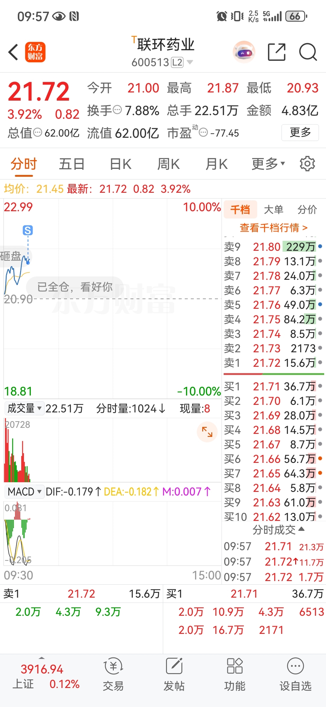$联环药业(SH600513)$ 卖了,拉吧