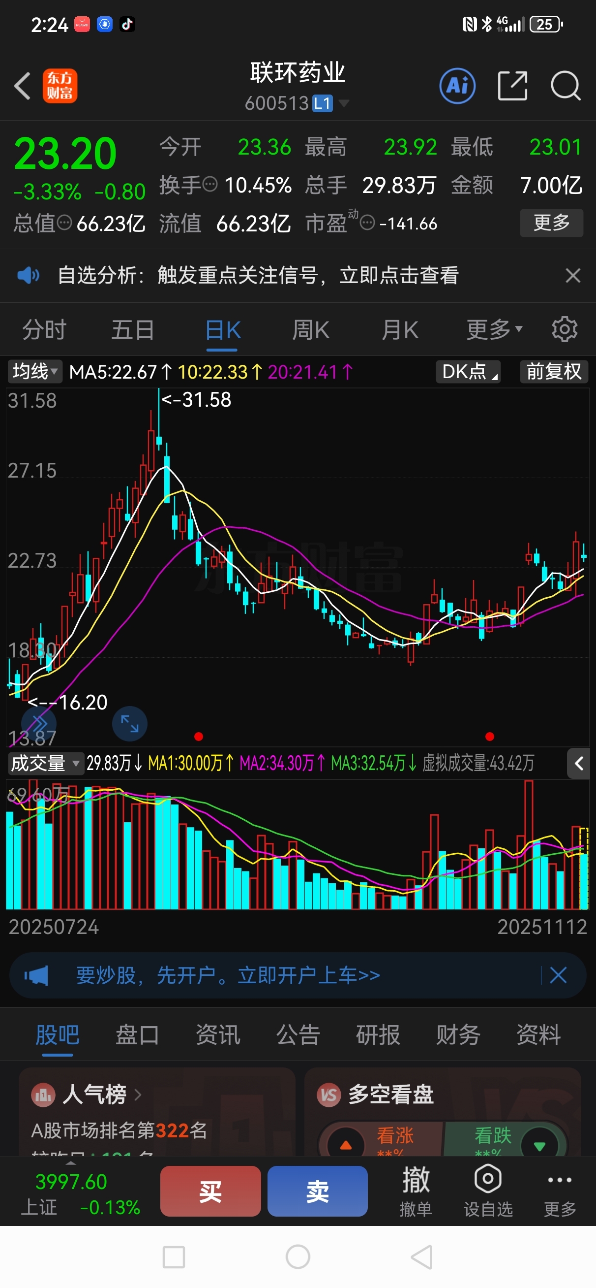 如果今天跌幅超过三个点。明天就很容易吃大肉,