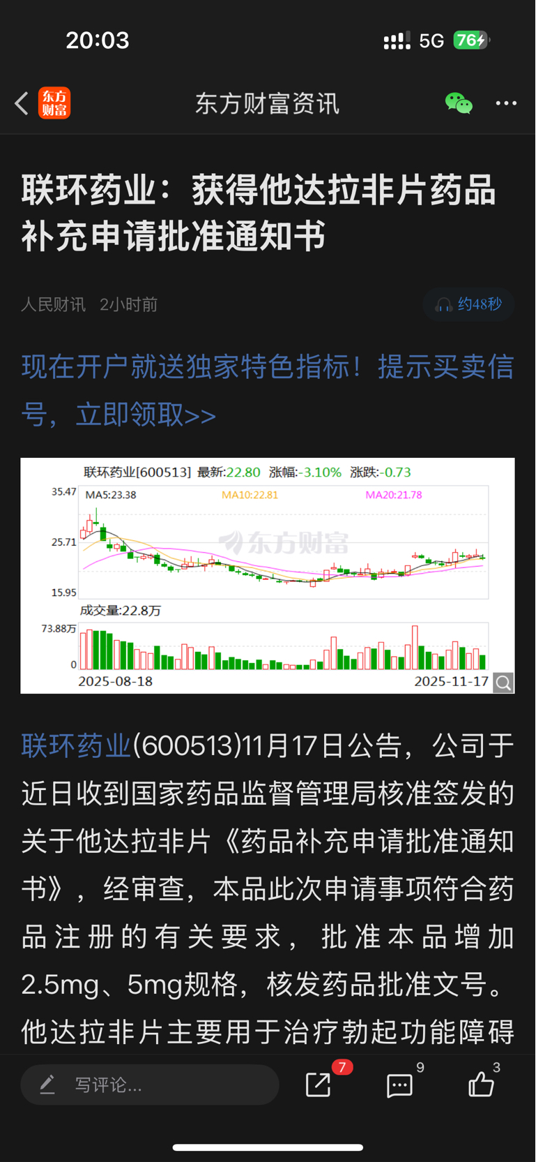 $联环药业(SH600513)$ 特大利好!!中国男人有救了,A股有救了,联环药业有救了