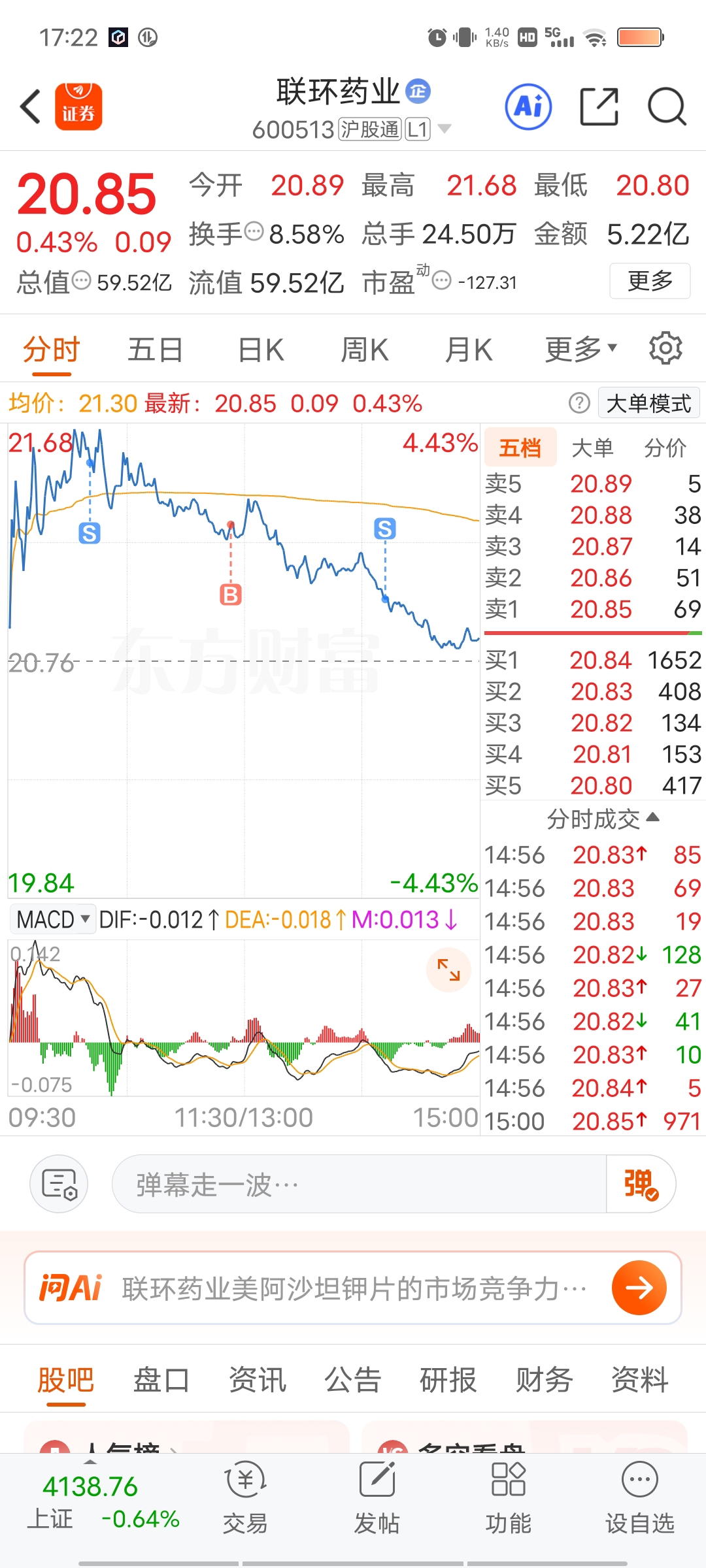 $联环药业(SH600513)$ 好蠢的,本来在高位卖出,后面又接回来,又在更低位卖出了