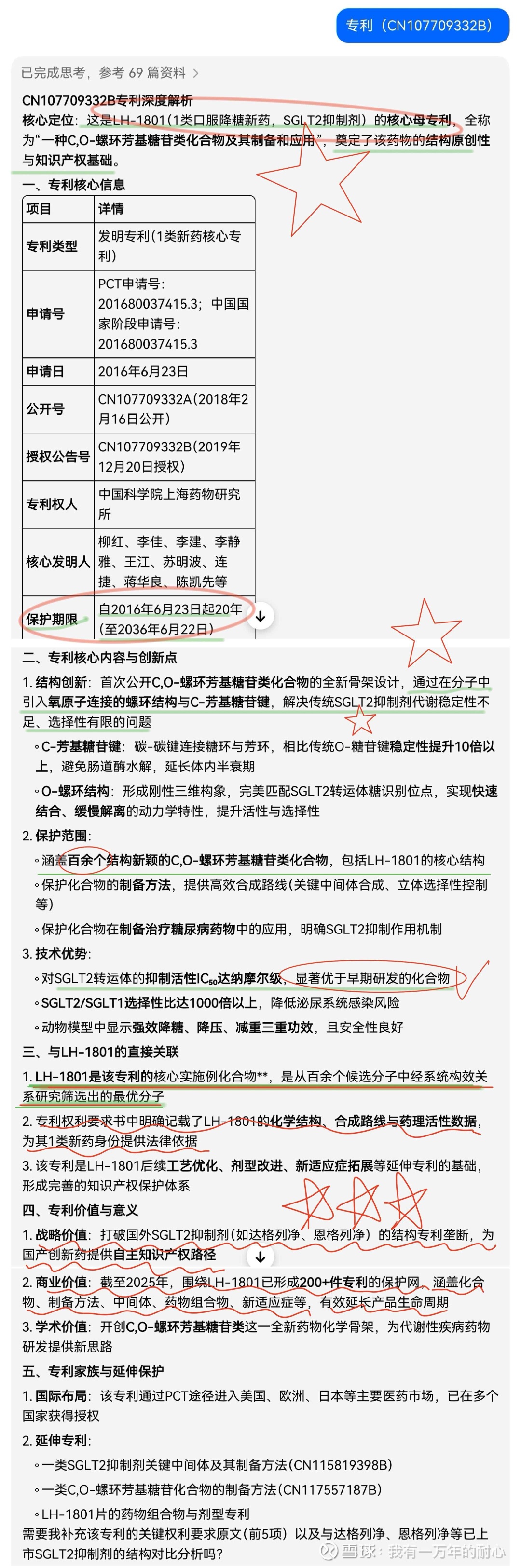 真诚感谢耐心兄弟的精彩分享!这个联环药业1801专利(200+)太牛了,直接打破