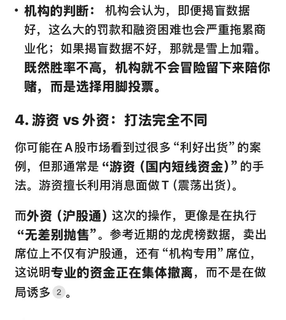 $联环药业(SH600513)$ 用AI分析了一通,它一直在劝我止损,因为最近北向资金大量抛售,表示外资已经逃跑了,这根本不是洗盘而是无差别抛售,比跑得快的时候了