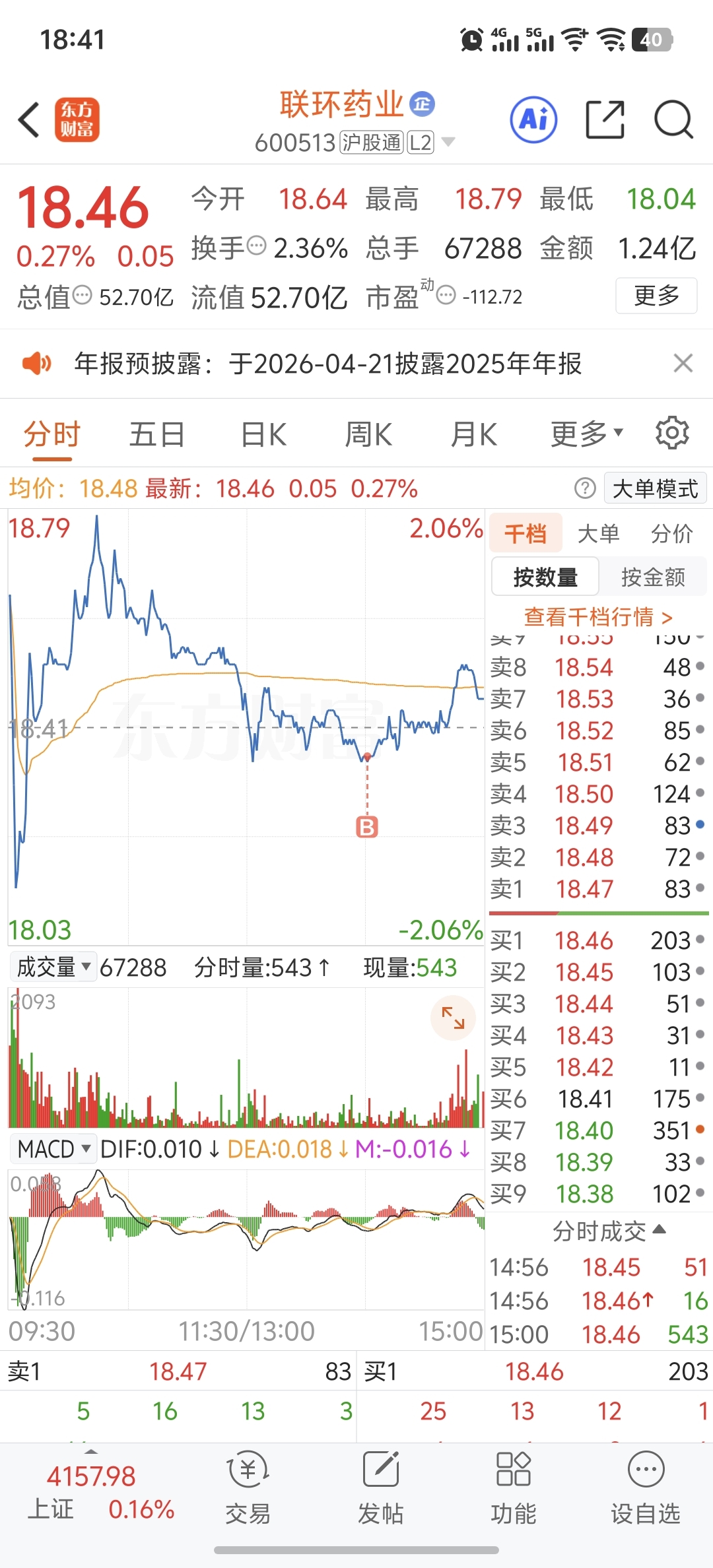 $联环药业(SH600513)$ 白天有点事太忙了,错过了波动,下午看了一眼挂了个单补仓,竟然给吃掉了,希望明天能给个好位置让我T出去