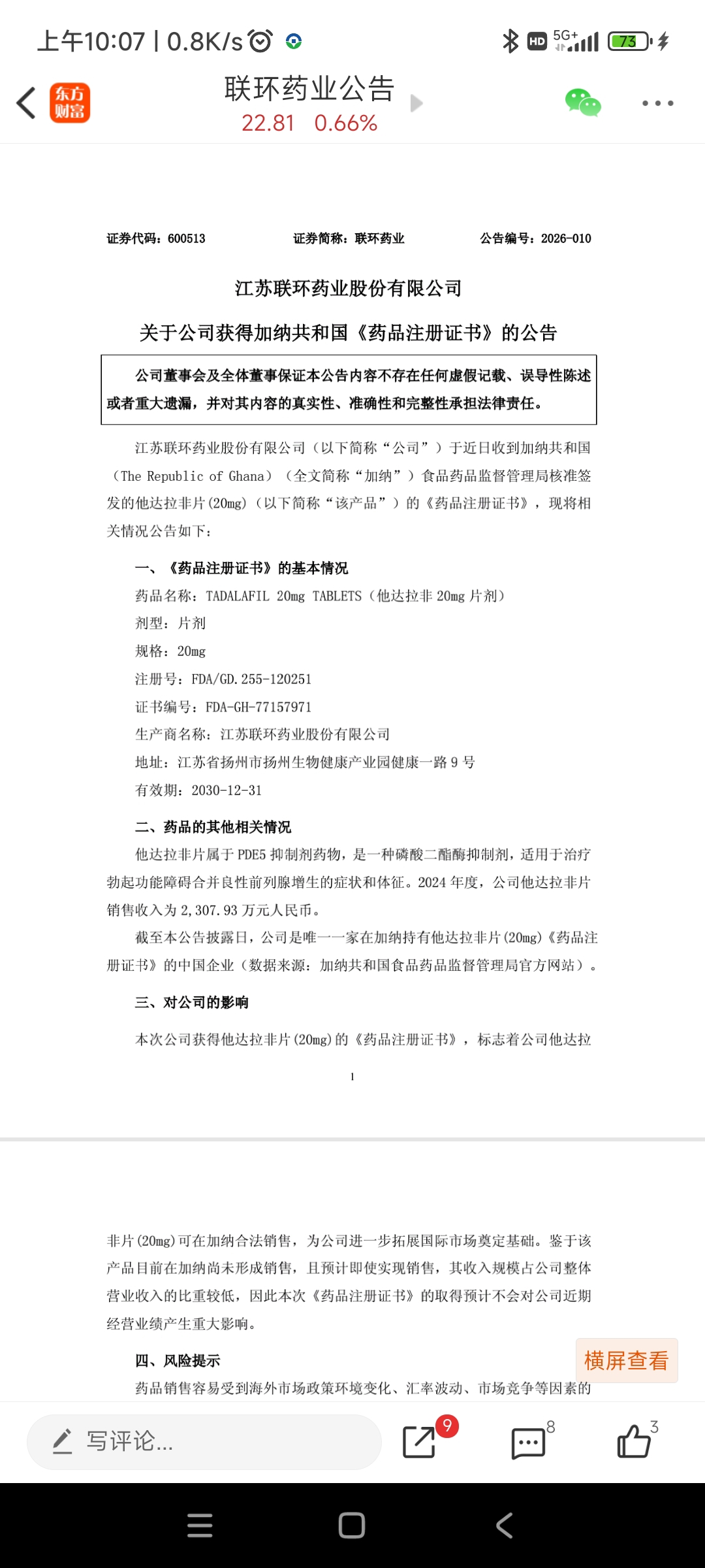 $联环药业(SH600513)$ 十五五药物出口+创新药揭盲上市预期!一季度三月揭盲!