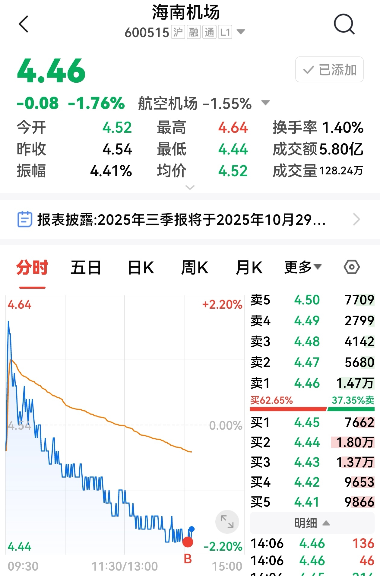 $海南机场(SH600515)$ 先部分接回来