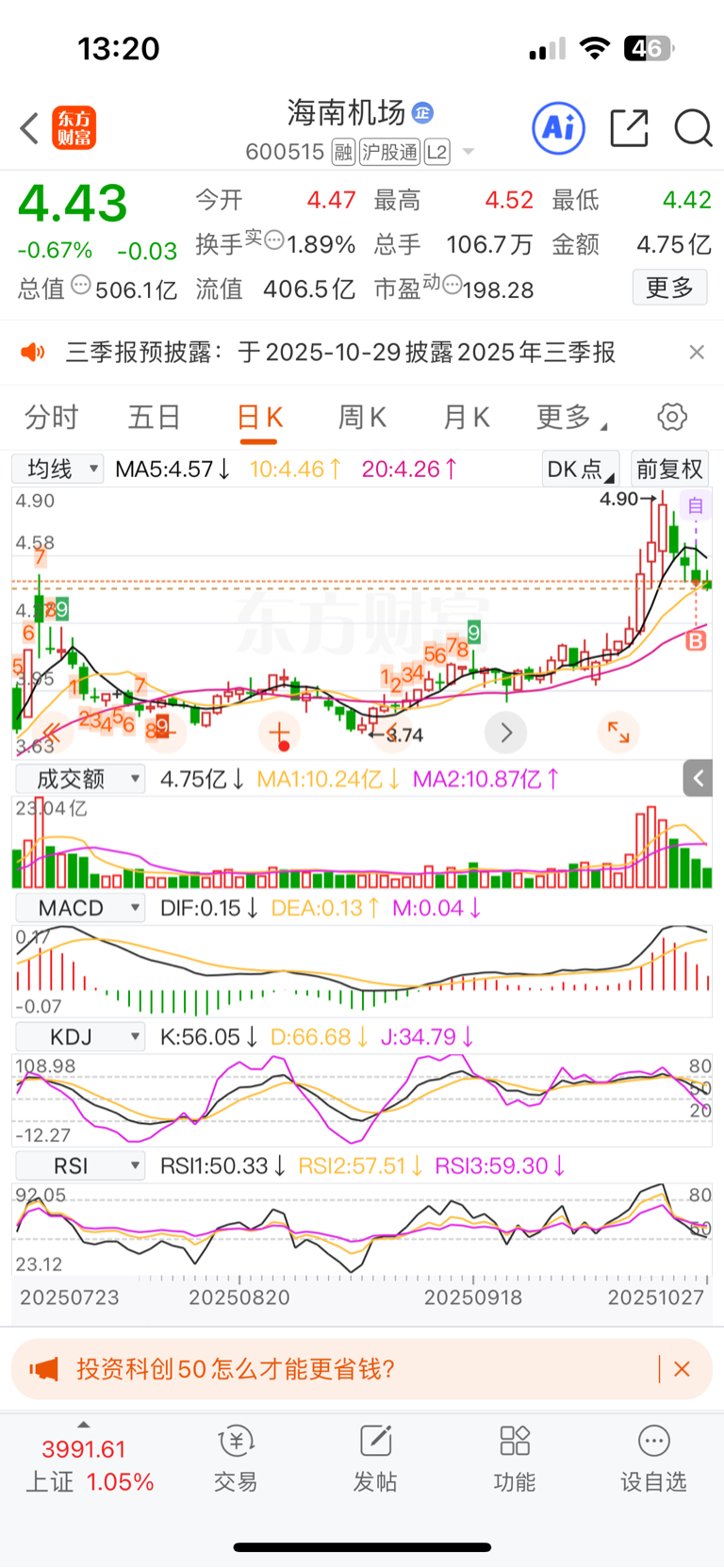 $海南机场(SH600515)$ 在等最后一天,明天不涨 走