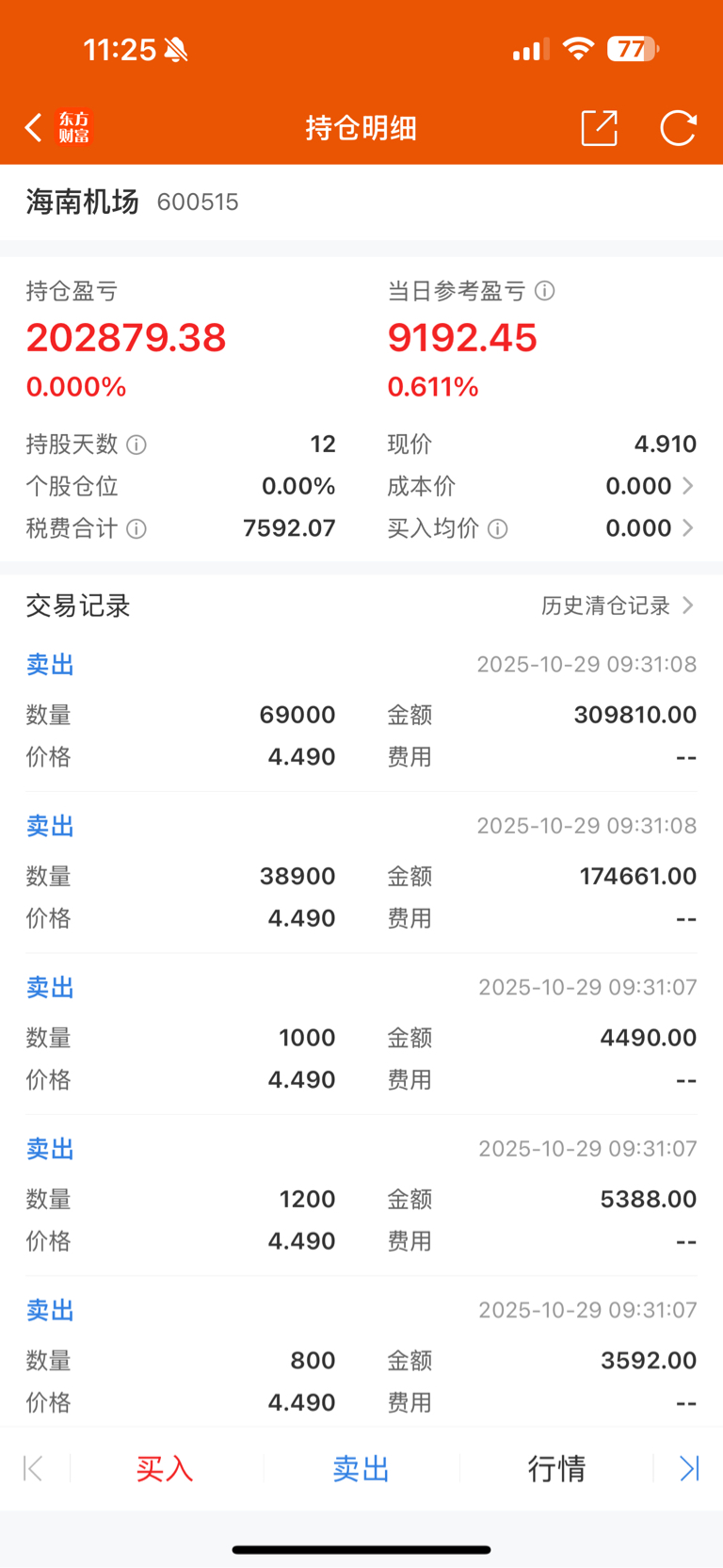 $海南机场(SH600515)$ 多的时候500万,少的时候200万仓位,今天终于来拉了,不过我卖飞了!终究还是没能逃过大A!