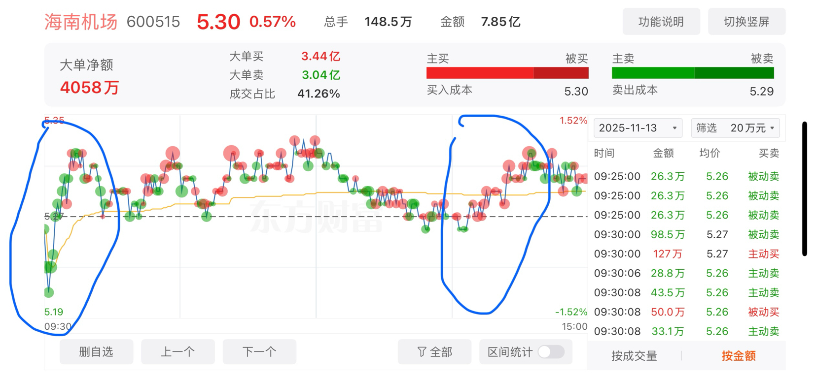 $海南机场(SH600515)$ 早盘那么多大单抛压都被接住了,股价没跌反升,尾盘大单抢筹,几乎一马平川。