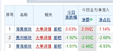 全国各地区板块,就海南持续几天净流入,你们品吧