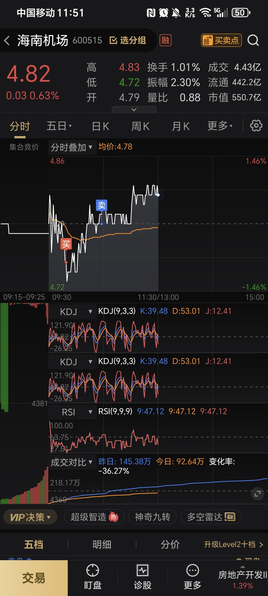 $海南机场(SH600515)$ 每天T一T,生活费又有了