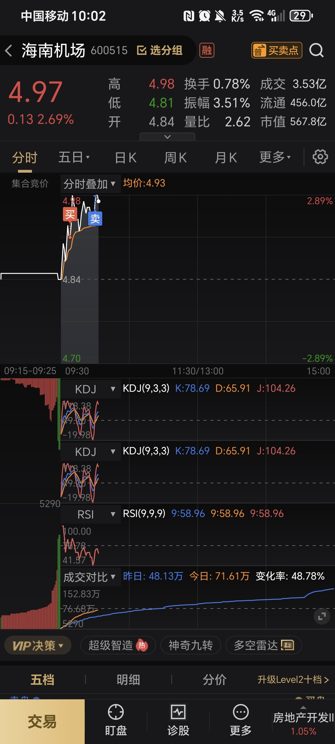 $海南机场(SH600515)$ 今天是个好日子,T一T,交替成功7分,又赚钱咯