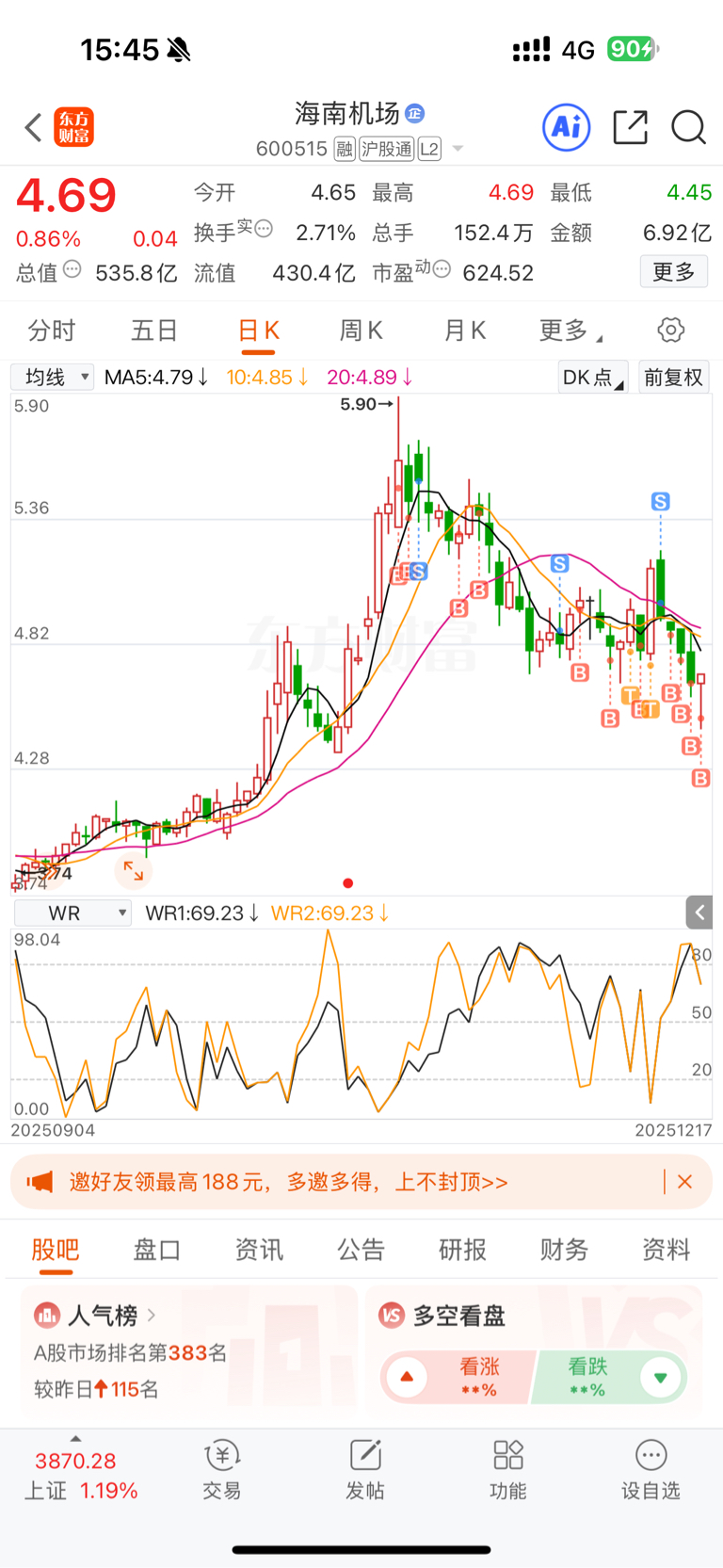 $海南机场(SH600515)$ 早知道不买了,回本了就应该走,走加进来了。服了