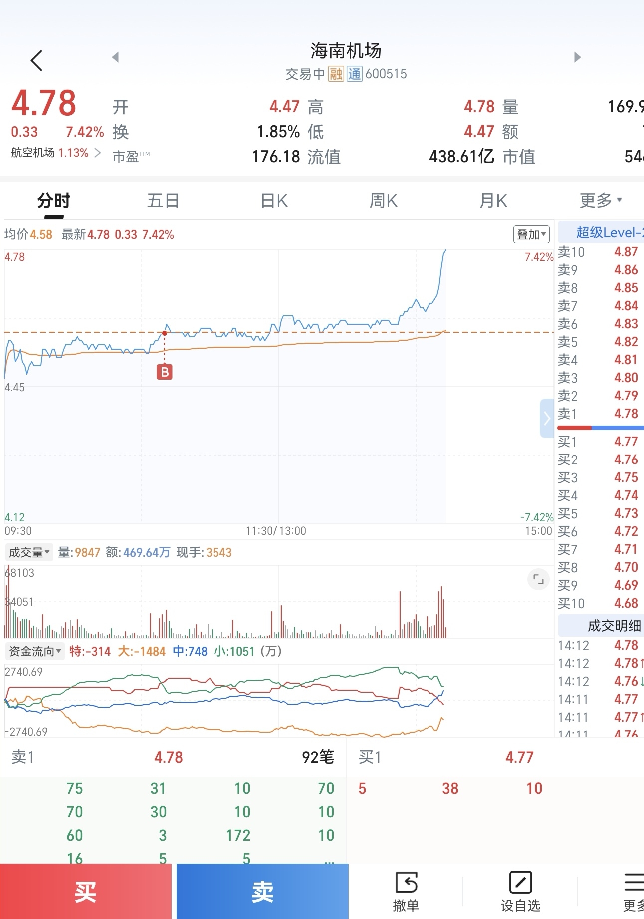 $海南机场(SH600515)$ 早上分享,有没有把握到。就算回落问题也不大了。