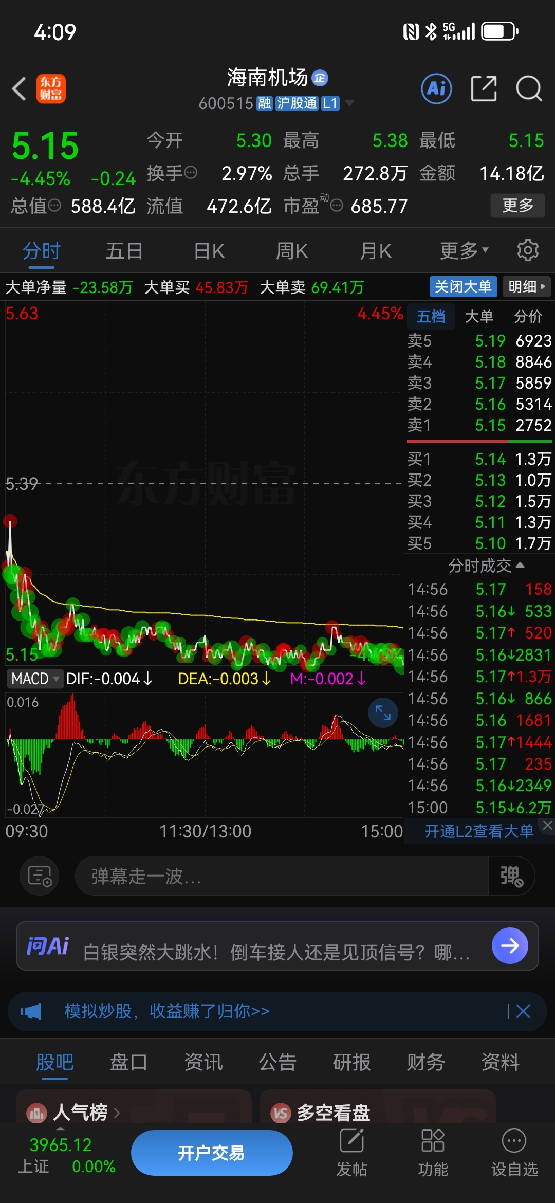 $海南机场(SH600515)$ 不知道这股要干啥,节后还能不能涨,心累,跨年红包都亏没了