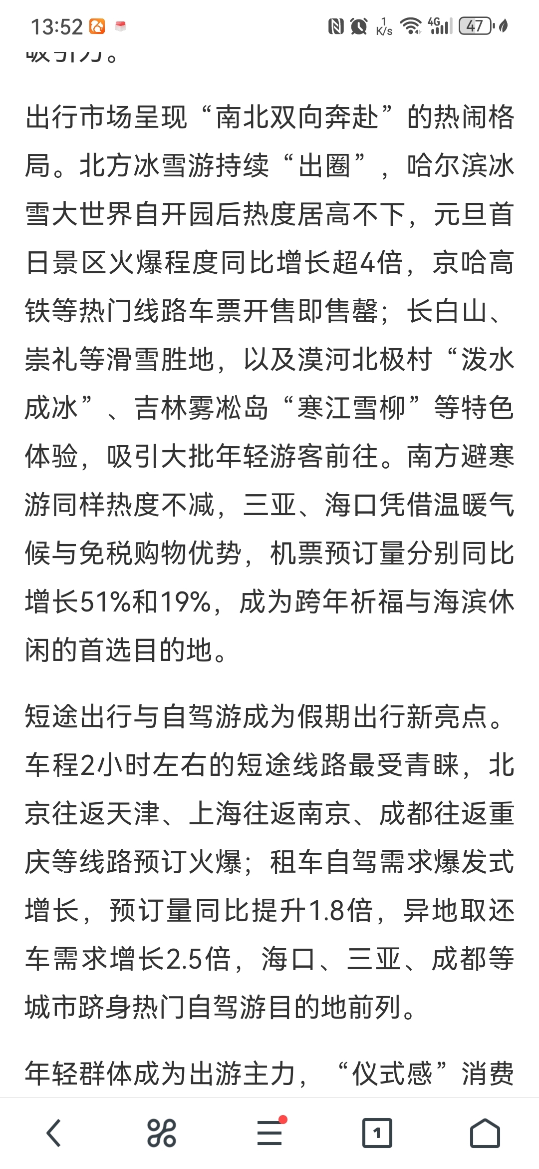 $海南机场(SH600515)$ 南方避寒游同样热度不减,三亚、海口凭借温暖气候与免税购物优势,机票预订量分别同比增长51%和19%,成为跨年祈福与海滨休闲的首选目的地