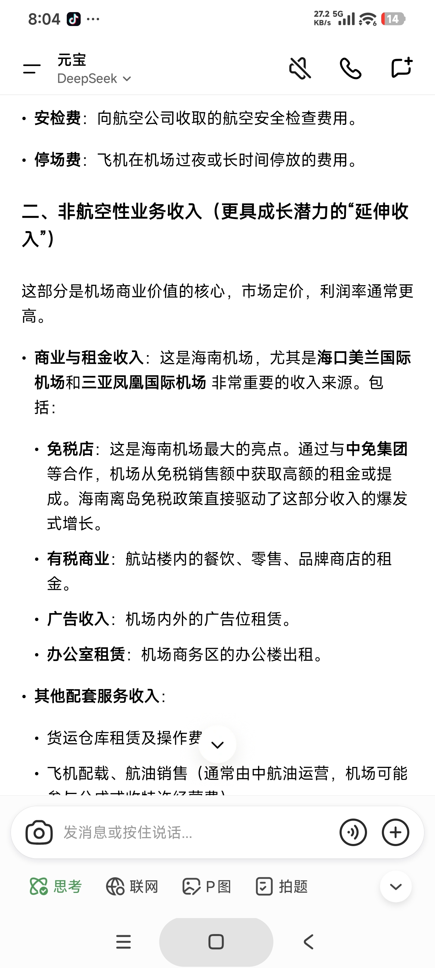海南机场除了航空主业和免税收入,还有外延收入吗?