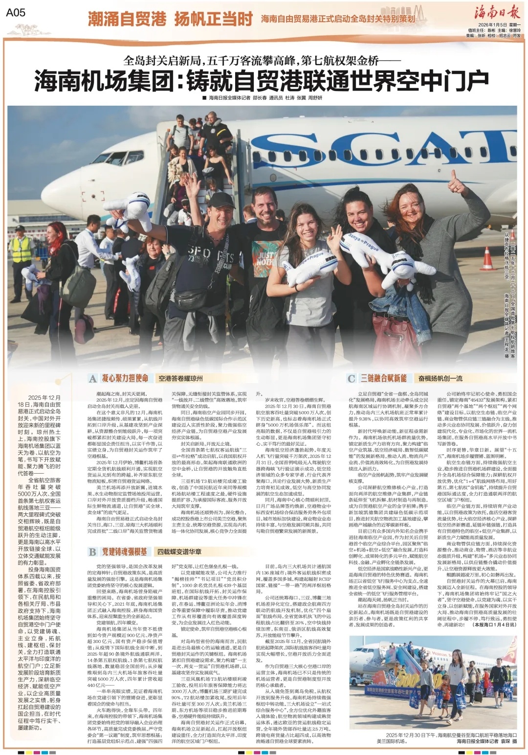 $海南机场(SH600515)$ 海南机场集团始终坚守自贸港空中门户使命,以党建铸魂、主业立身,拓航线、建枢纽、保封关,全力打造联通太平洋与印度洋的航空门户;立足新发展阶段培育新质生产力,深耕临空经济、赋能低空产业,以企业高质量发展之实绩,躬身扛起自贸港建设的国企担当,在时代征程中笃行实干、屡建新功。