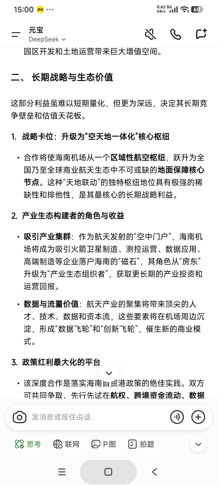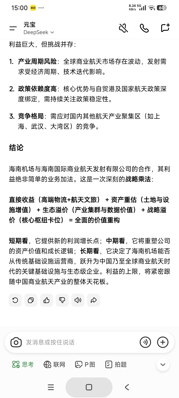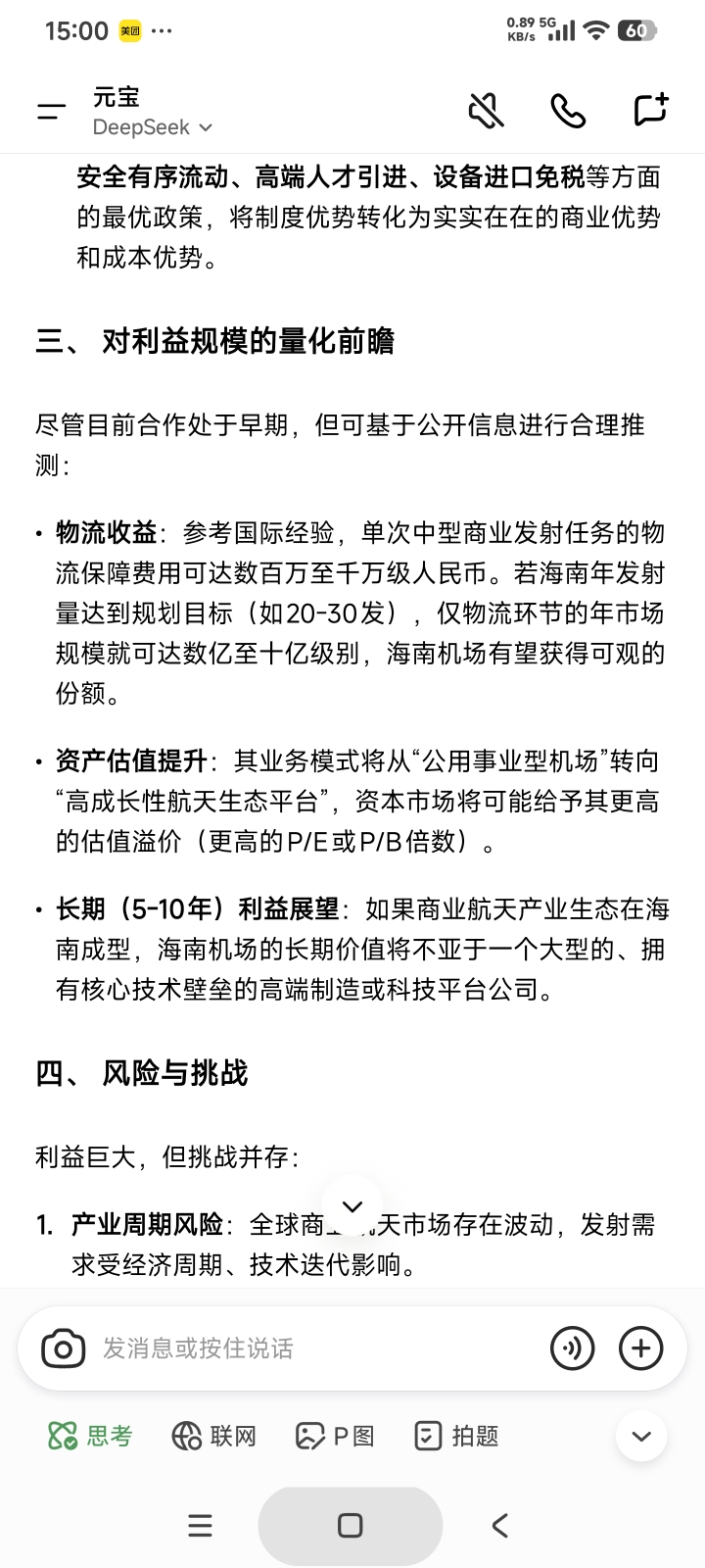 结论:海南机场与发射公司的合作,远不止于简单的“接送货、接送人”,而是一个从基础服务到产业协同,再到生态共建的立体化合作体系。这种合作不仅能直接增厚海南机场的业绩,更能将其从传统基础设施运营商,升级为“空天地一体化”综合服务商和商业航天产业生态构建者,具有深远的战略价值。目前,双方已在一些领域开展接触,具体合作项目的落地进度需密切关注公司公告。