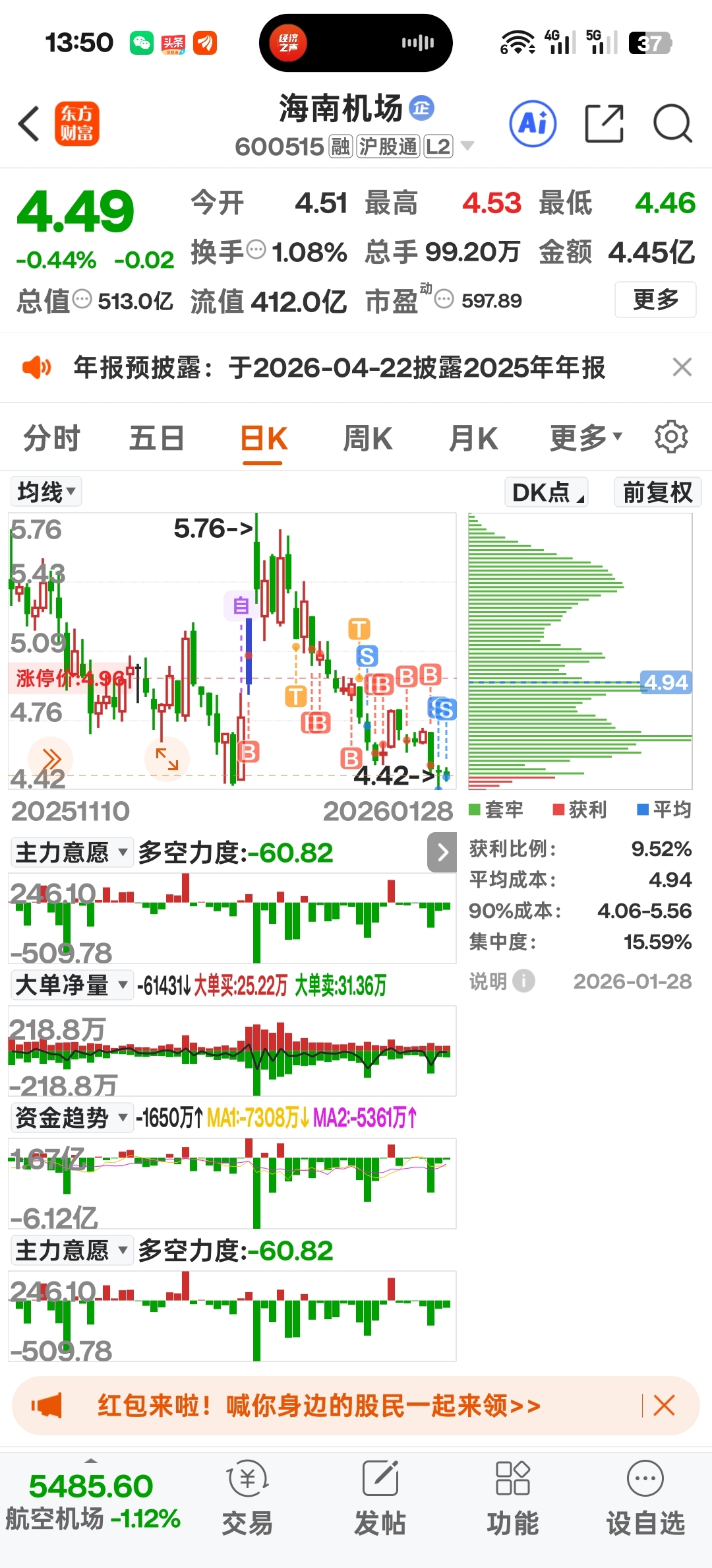 $海南机场(SH600515)$ 暴涨吧,我走了!很好看你,不得不止损!