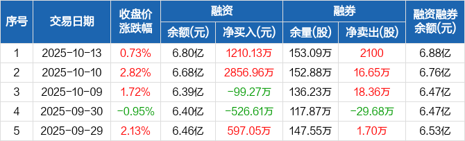 方大炭素:融资余额6.8亿元,创近一年新高(10-13)