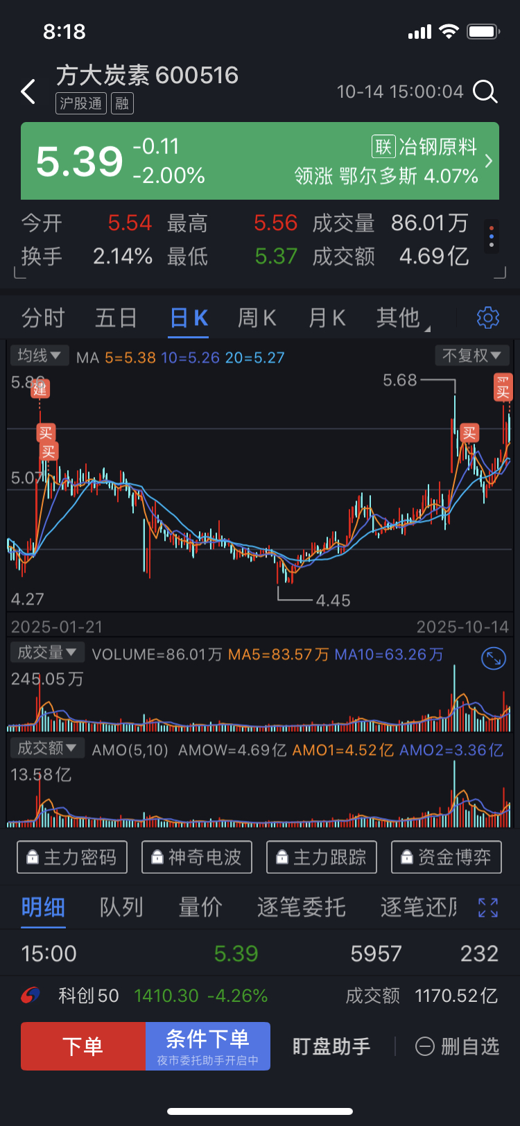 $方大炭素(SH600516)$ 虽然每一轮布局都布于短期最高点,看上去风险很大,技术很烂,其实风险才是最小的。因为既然股价能在低位区间屡屡上攻,则证明这支票有主力多次介入,从长远看股价必然会上涨。耐心持股,闲庭信步,笑看云起云落。加油