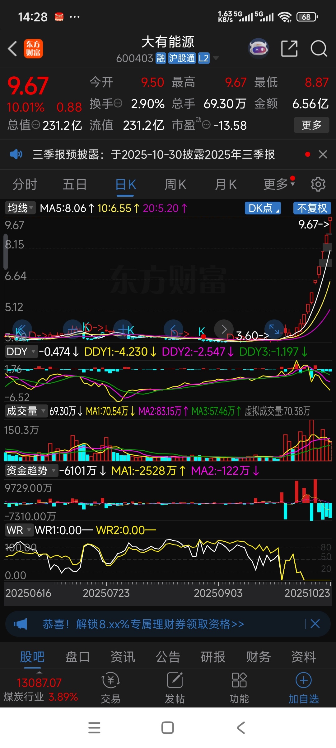 有能力的庄家机构想涨不需要理由就像大有能源一样,垃圾的庄家机构想跌就像方大炭素一样