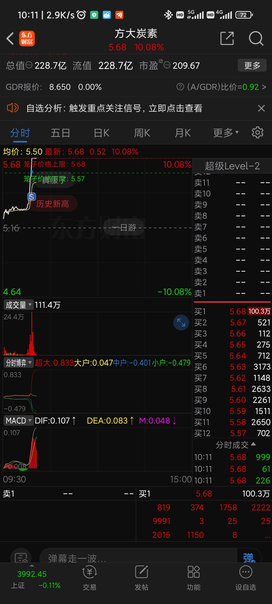 $方大炭素(SH600516)$ 就缺我手中这两百手吗?卖了就涨停板,