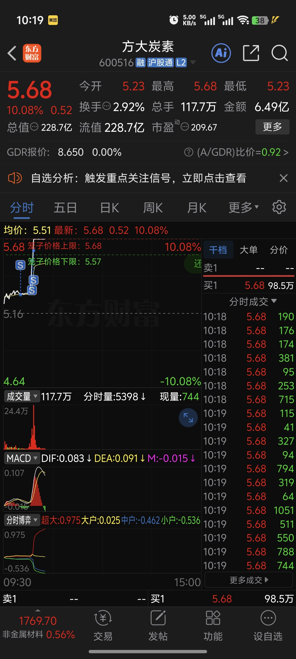 $方大炭素(SH600516)$ 我就剩下个底仓了