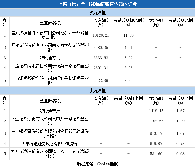 沪股通现身龙虎榜,方大炭素涨停(10-28)