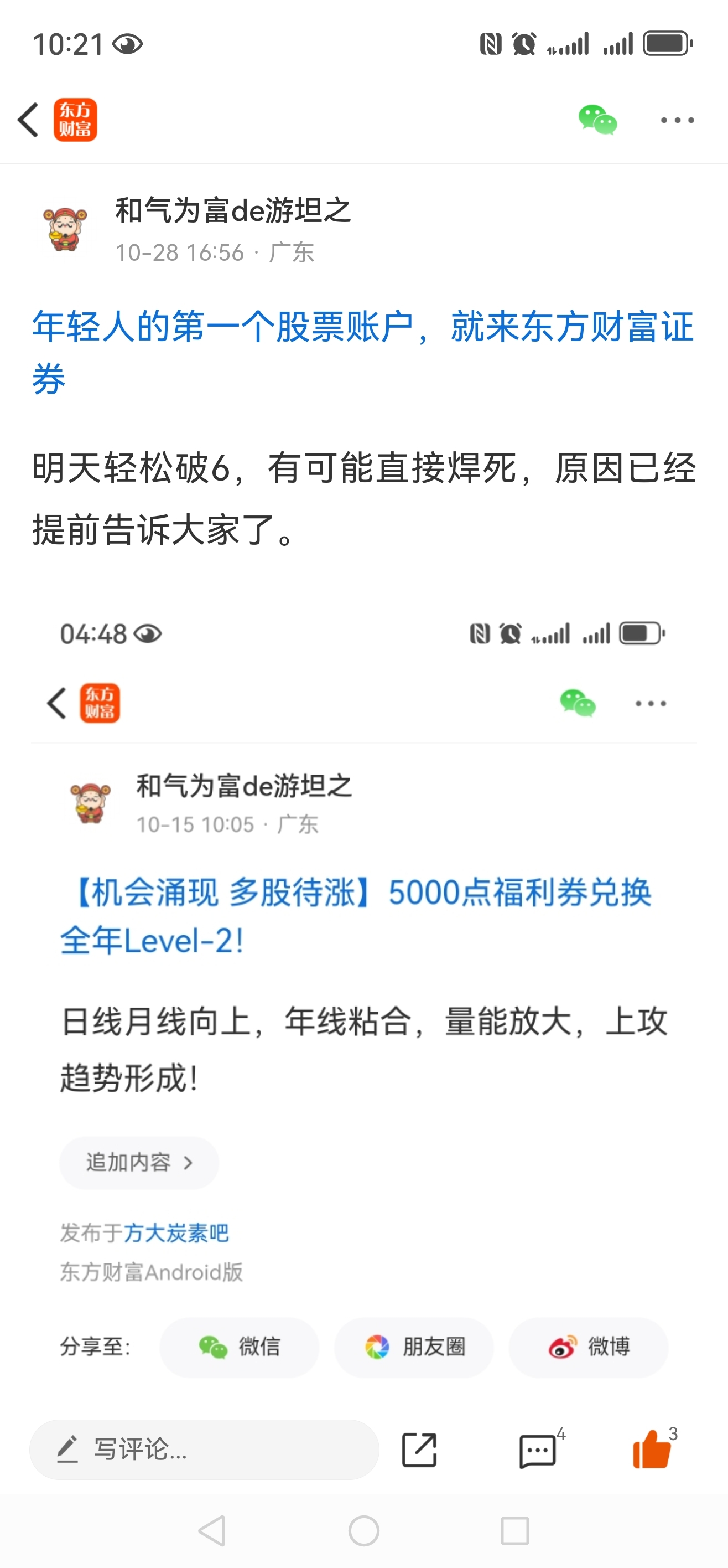 温馨提示: 1.根据《证券法》规定,禁止编造、传播虚假信息或者误导性信息,扰乱证券市场;2.用户在本社区发表的所有资料、言论等仅代表个人观点,与本网站立场无关,不对您构成任何投资建议。用户应基于自己的独立判断,自行决定证券投资并承担相应风险。《东方财富社区管理规定》