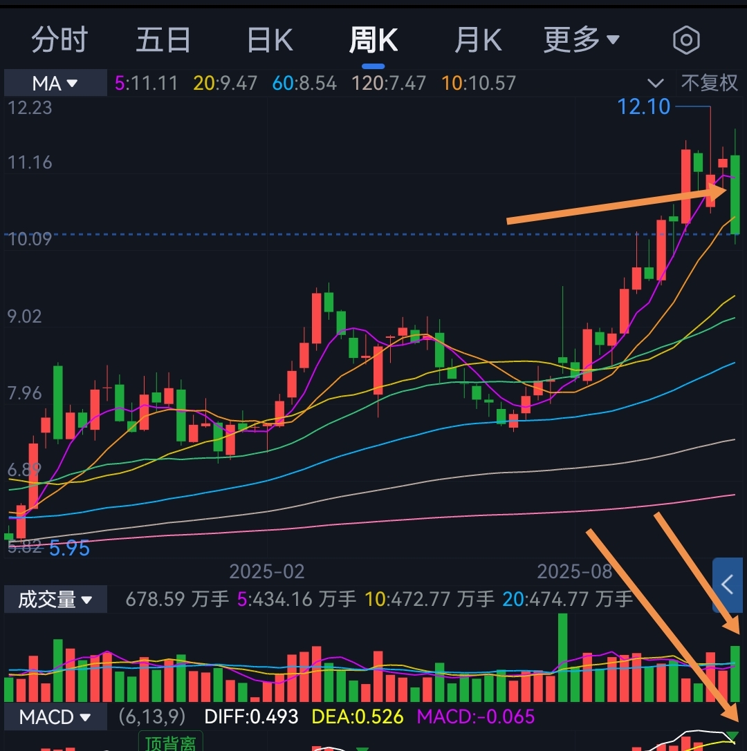 $徐工机械(SZ000425)$ 周线巨量和高位大阴和水上macd死叉,短期可能上涨难度很大,不过基本面和趋势未破,按照原计划继续中长线,但一定注意仓位控制,仙宝目前成本极低还是仅仅才半仓欧