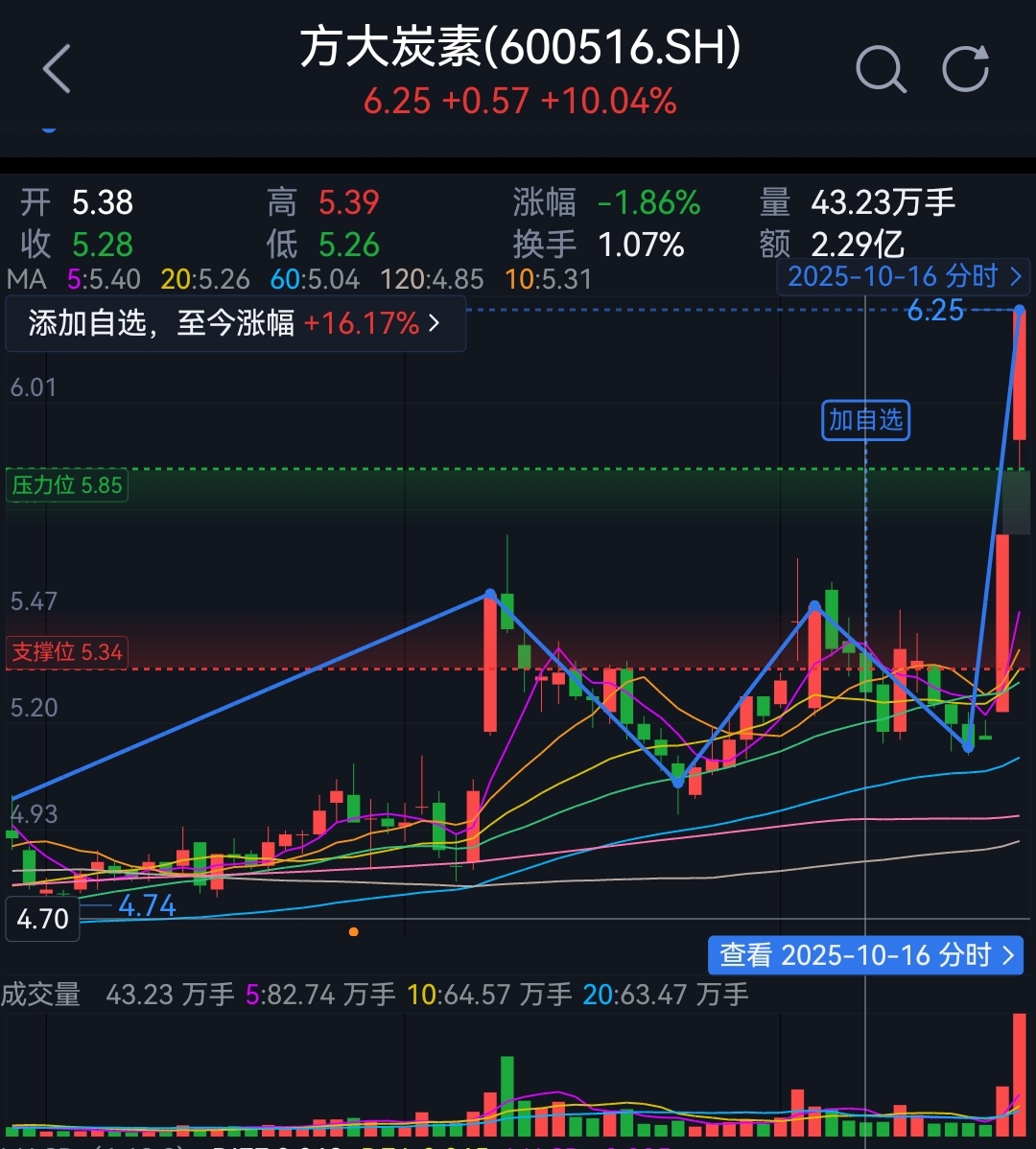 $方大炭素(SH600516)$ 方大近期表现较强,属于启动迅速且爆发力比较强的一只,抓到的宝宝们注意按照短线思路去做,不要恋战~#社区牛人计划#