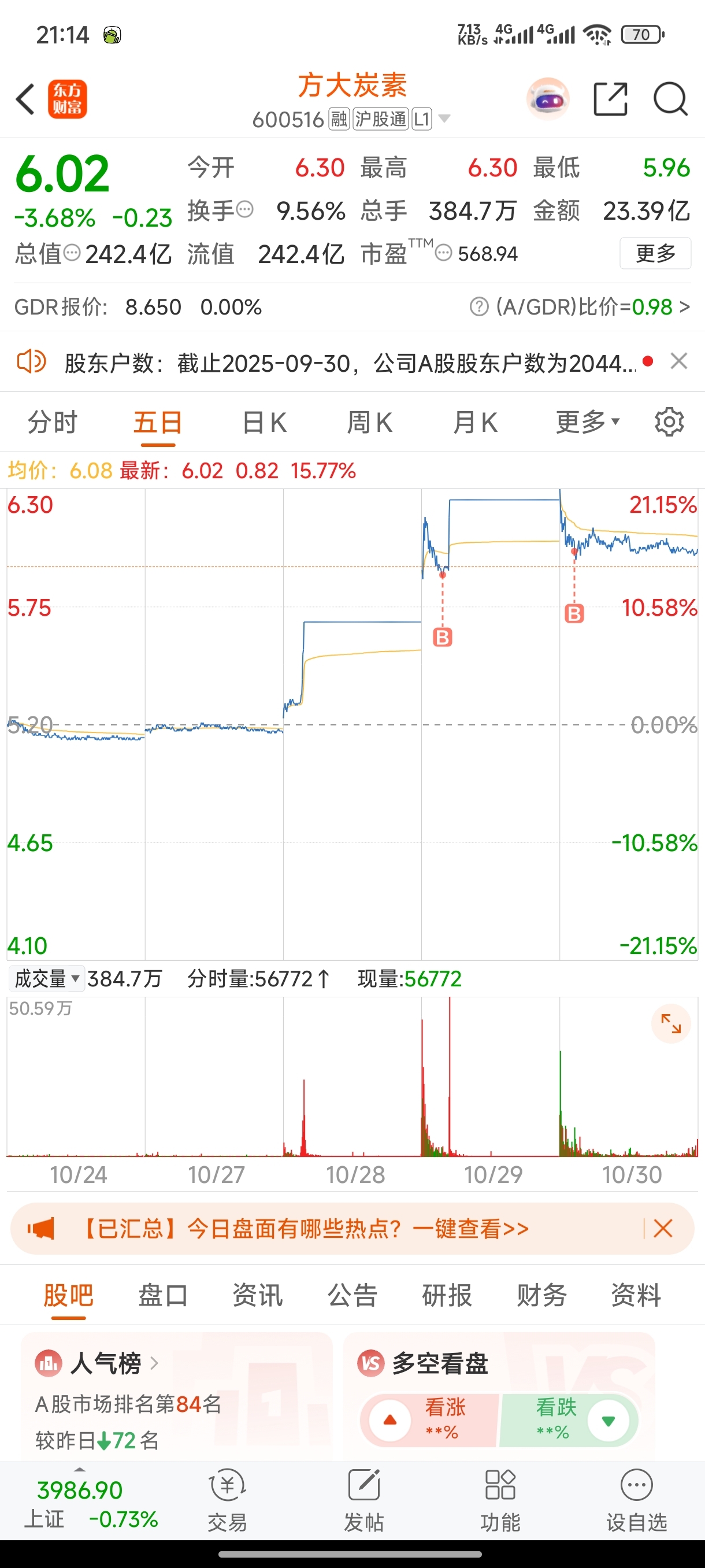 $方大炭素(SH600516)$ 继续加仓格局