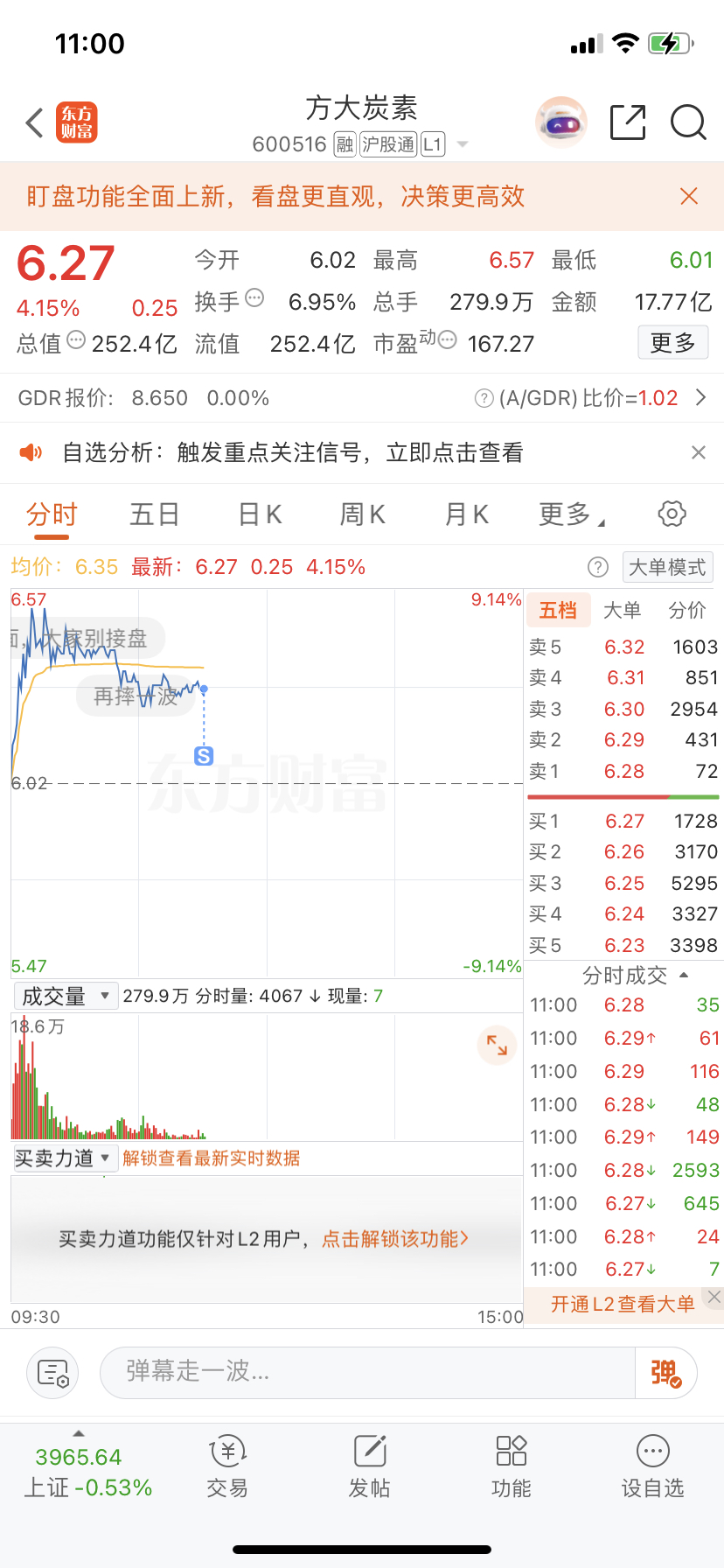 $方大炭素(SH600516)$ 走了、等你涨停太难了