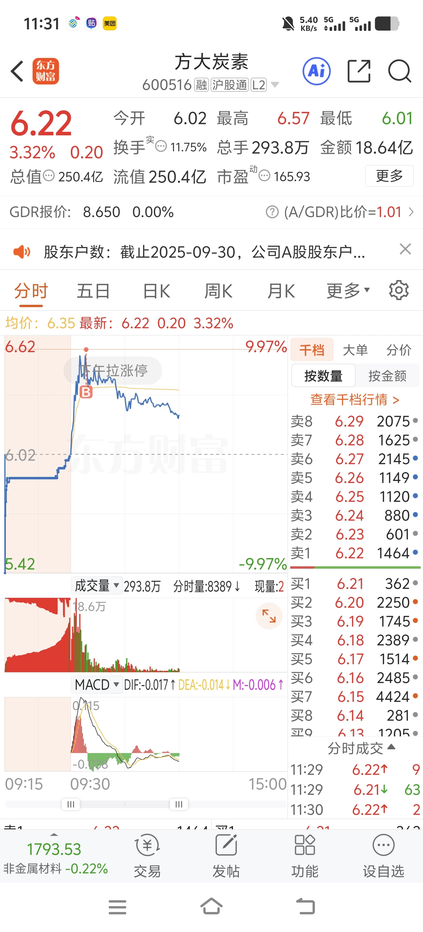 $方大炭素(SH600516)$ 心态有点崩
