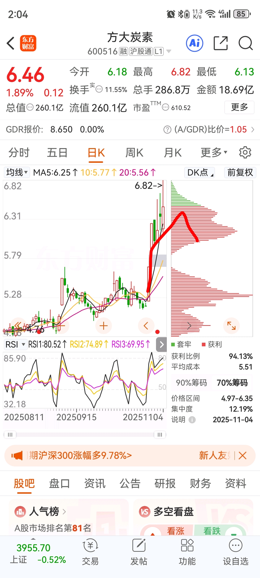$方大炭素(SH600516)$ 唉,啥时候跌下来
