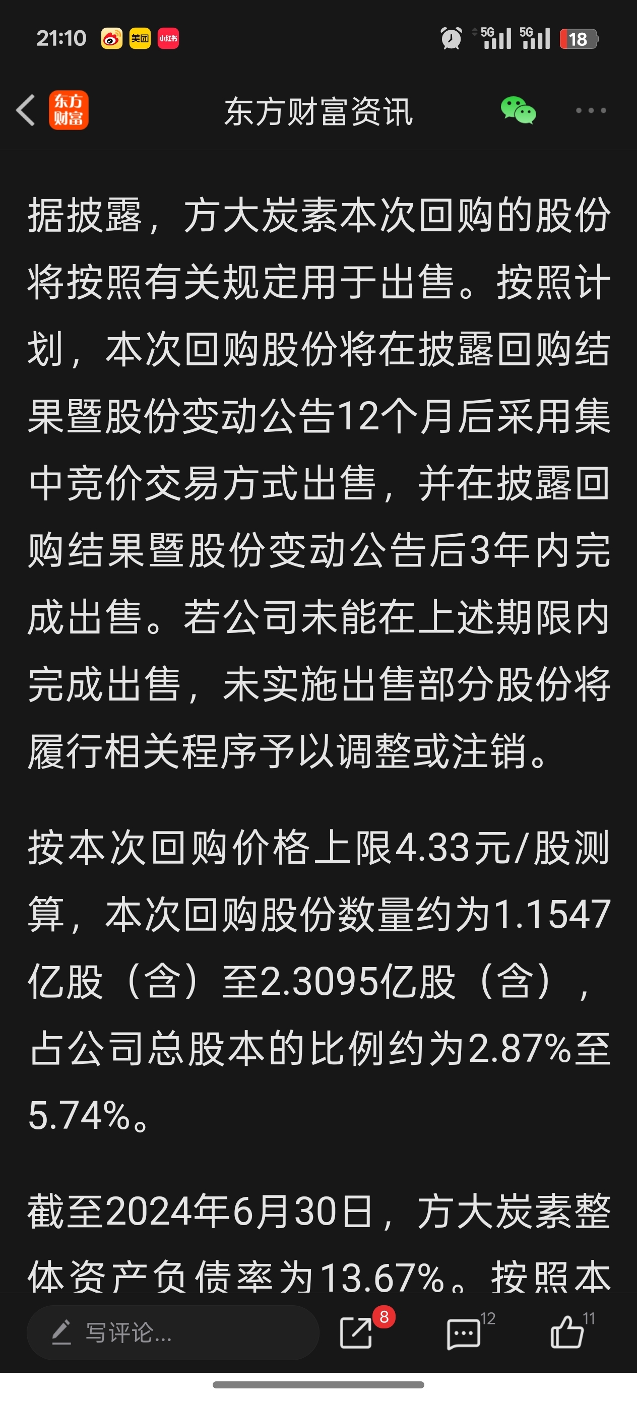 $方大炭素(SH600516)$ 好好看看去年的回购公告咋说的
