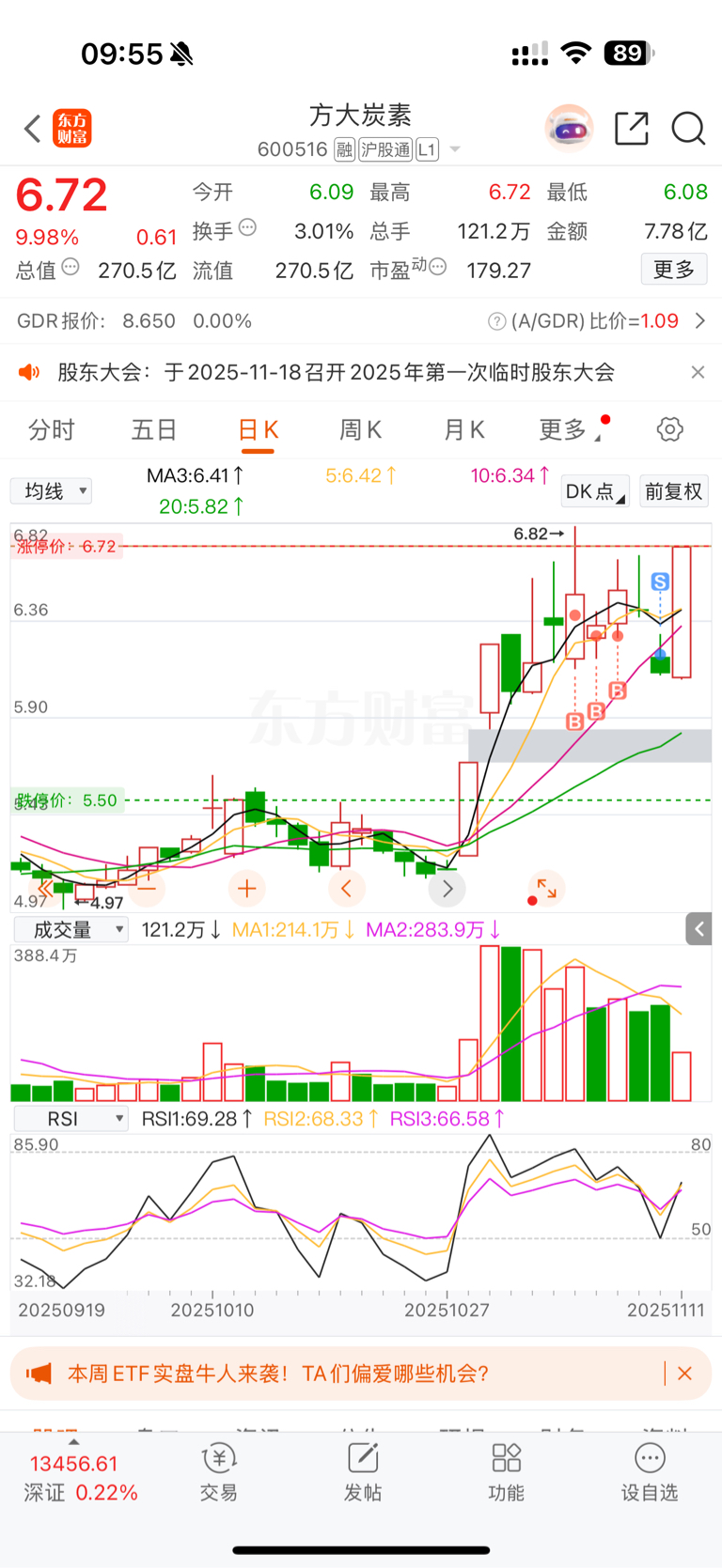 $方大炭素(SH600516)$ 心态奔了,你不是减持吗?这样恶心的手法