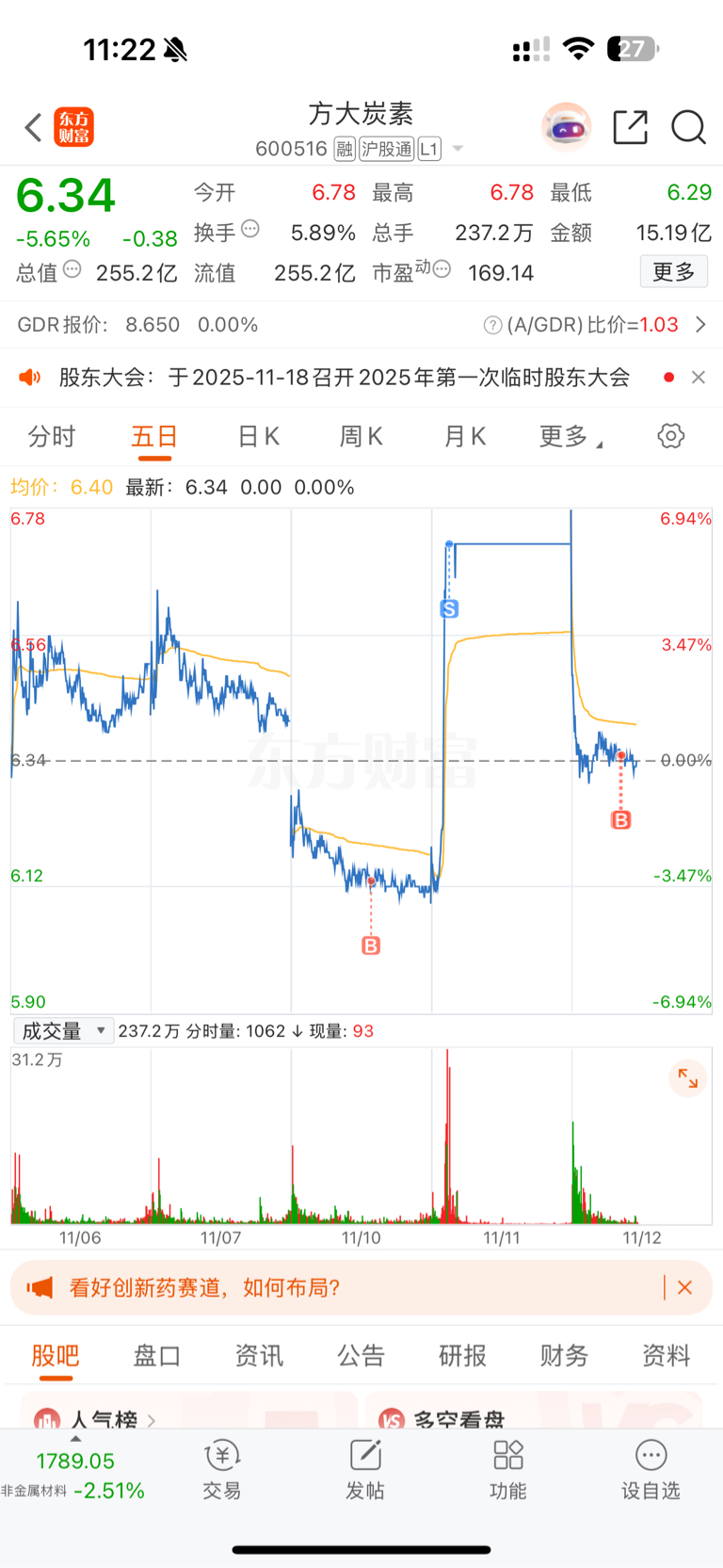 $方大炭素(SH600516)$ 我胡汉三又回来了