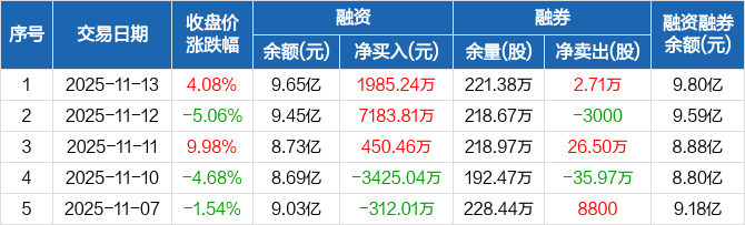 方大炭素:融资余额9.65亿元,创近一年新高(11-13)