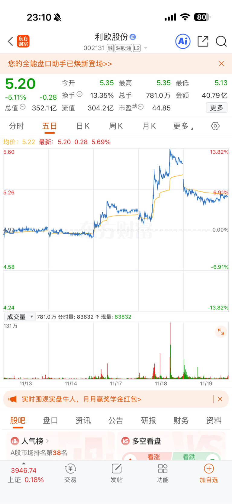 $方大炭素(SH600516)$ 看看利欧昨天碰了一下涨停今天低开五个点