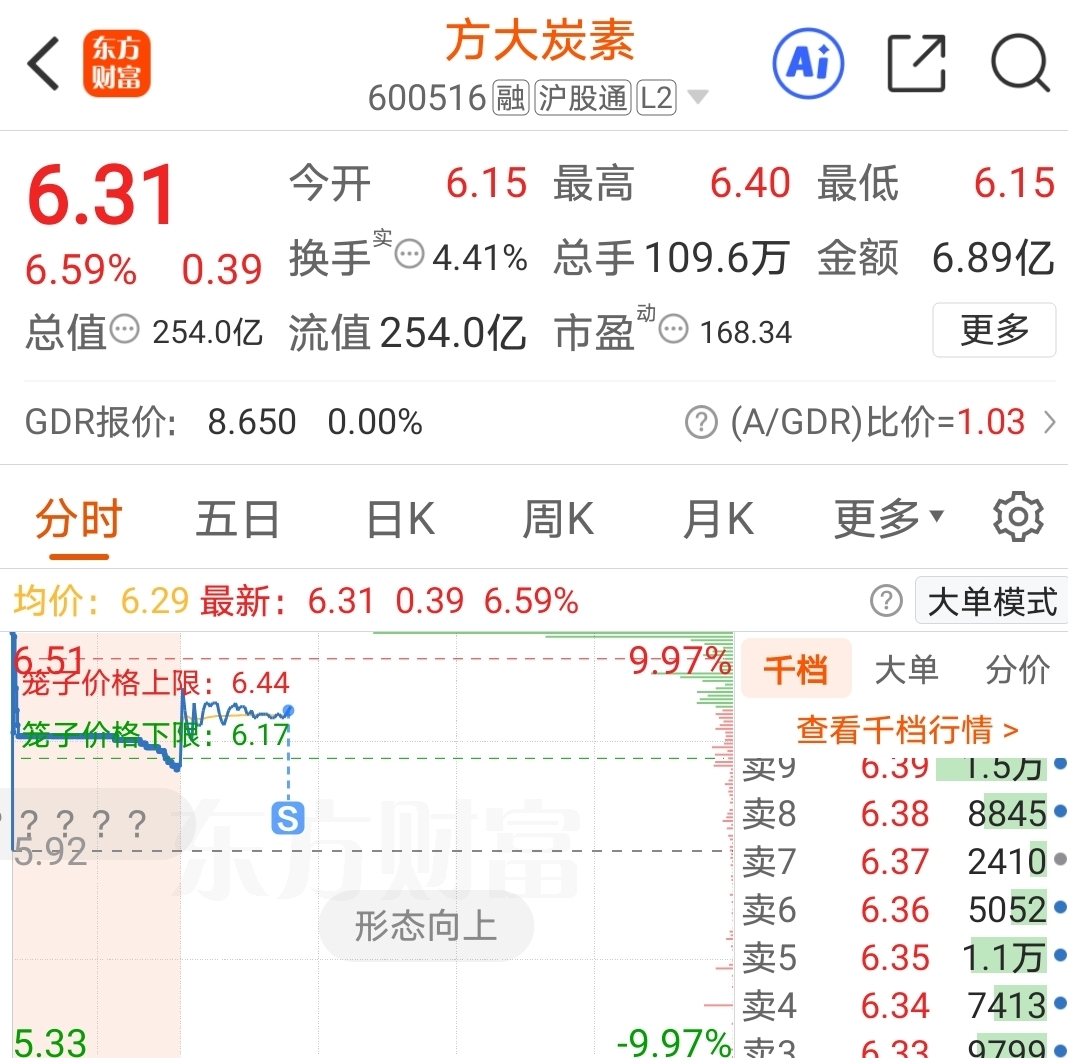 $方大炭素(SH600516)$ 走了,本来7.06解套盈利没走,现在6.3走了持平。套了1300天,留下的兄弟发财。