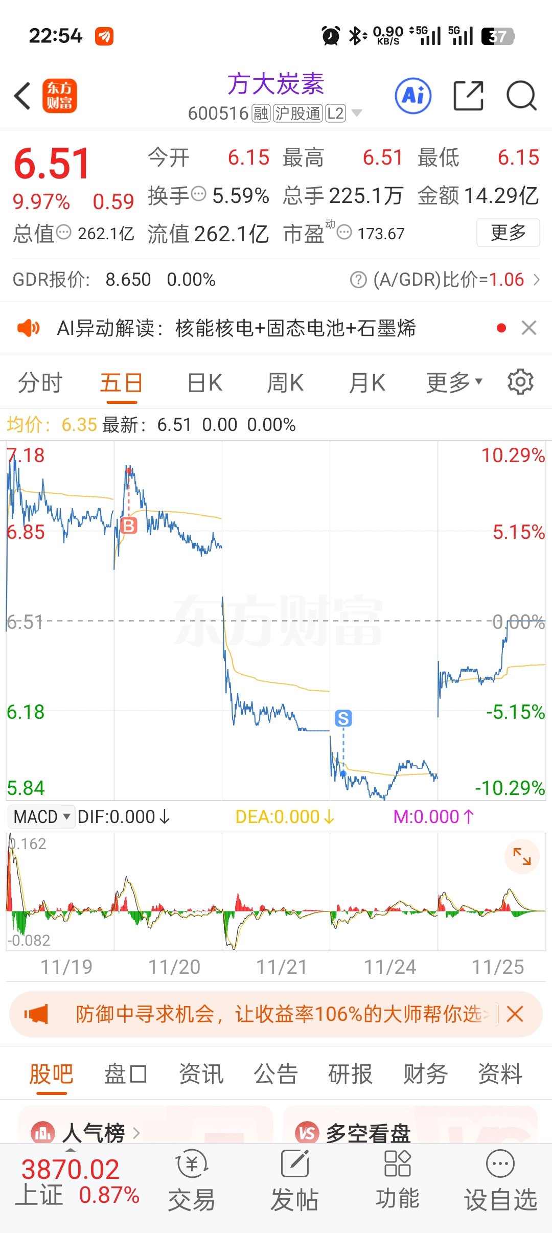 $方大炭素(SH600516)$ 买入连跌两天还吃了个跌停,割肉走了第二涨停了