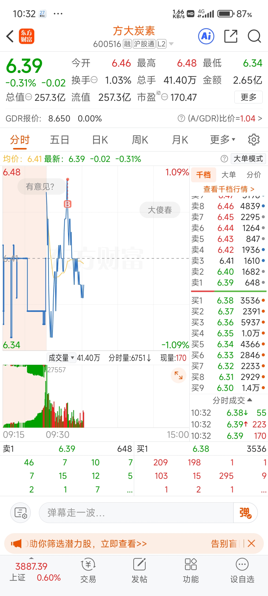 $方大炭素(SH600516)$ 被我买崩了,6.47精准出击