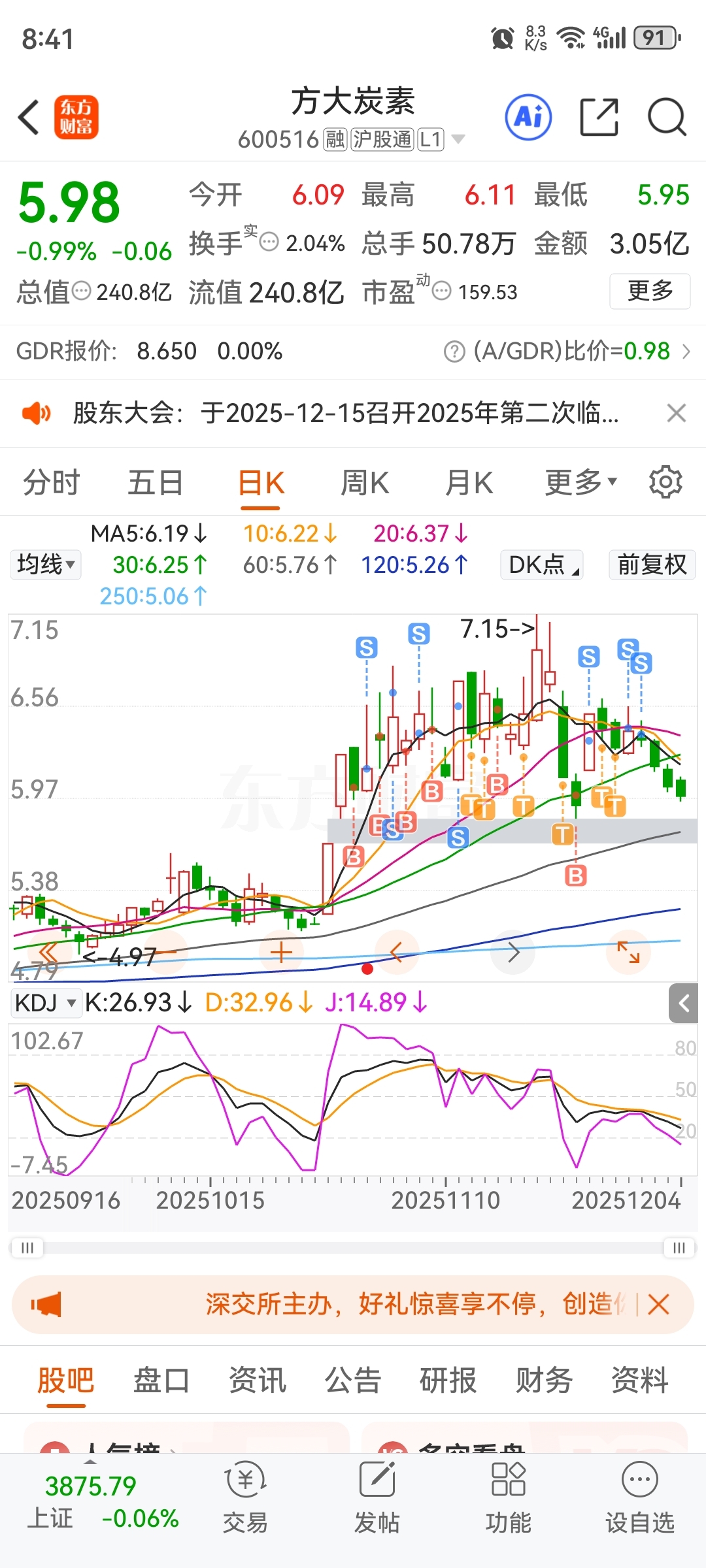 $方大炭素(SH600516)$ 还好前两天清仓了!