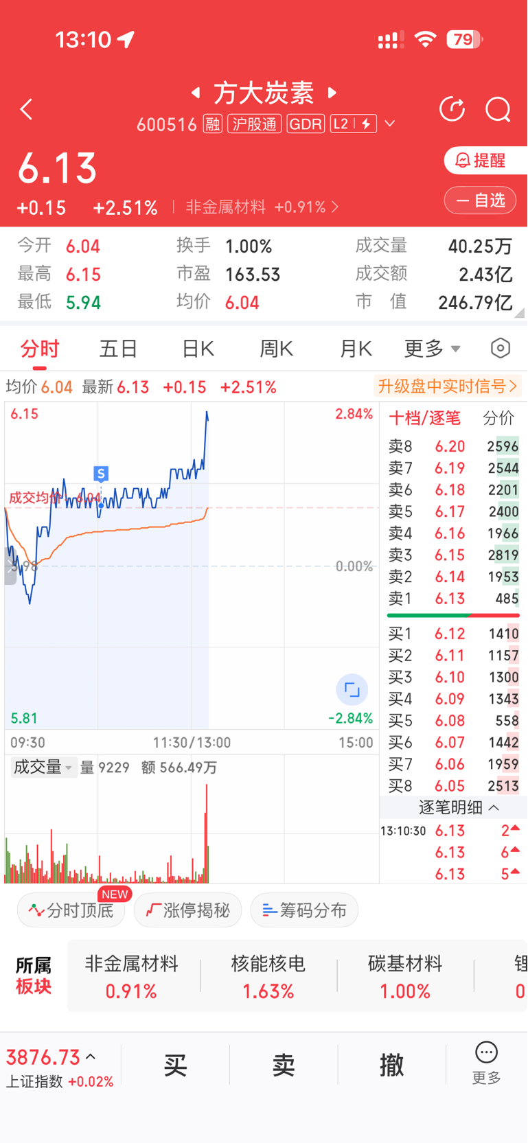 $方大炭素(SH600516)$ 的,下来,不许涨,给我横盘阴跌,你们快点卖,收盘变绿