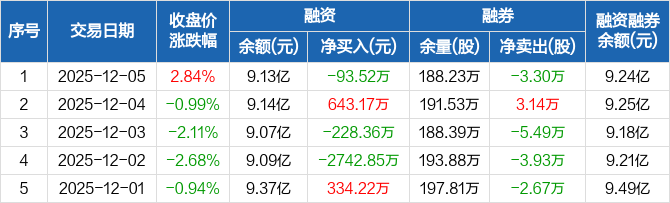 方大炭素:融资净偿还93.52万元,融资余额9.13亿元(12-05)
