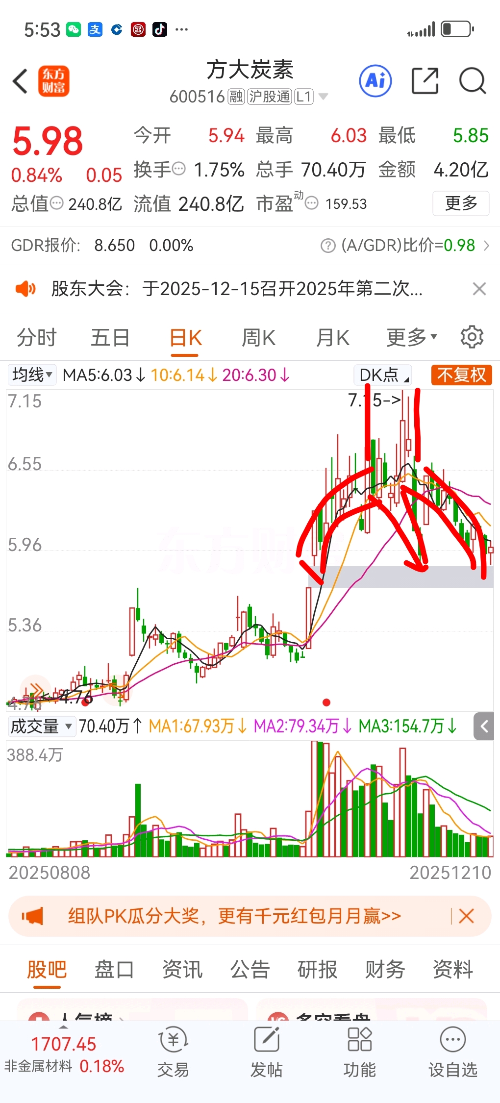 $方大炭素(SH600516)$ 麒麟瓜。一抓定乾坤。春节前必妖大涨百分之五十~百分之百。拭目以待。坚决不下车。明天有滴点继续加仓