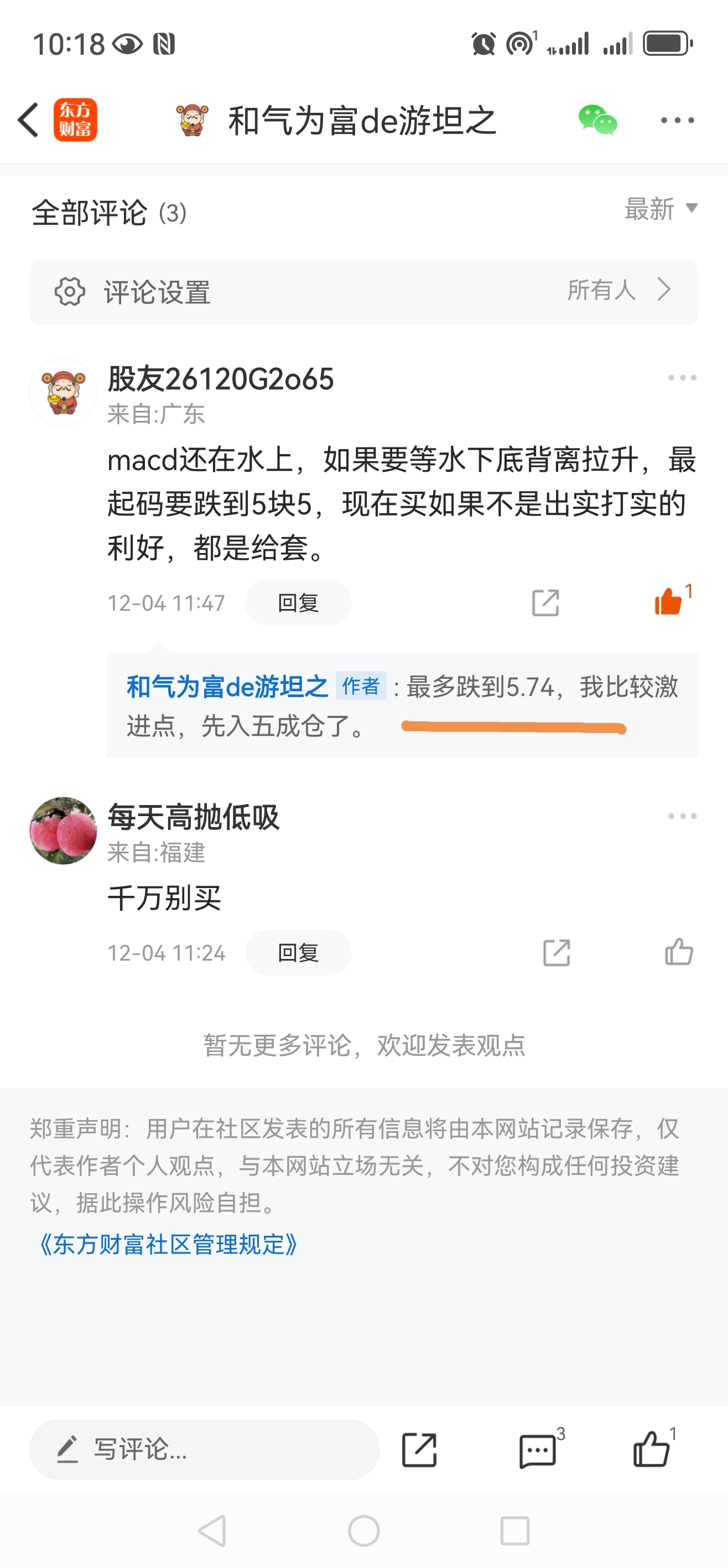 温馨提示: 1.根据《证券法》规定,禁止编造、传播虚假信息或者误导性信息,扰乱证券市场;2.用户在本社区发表的所有资料、言论等仅代表个人观点,与本网站立场无关,不对您构成任何投资建议。用户应基于自己的独立判断,自行决定证券投资并承担相应风险。《东方财富社区管理规定》