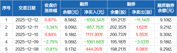 方大炭素:融资净偿还1056.34万元,融资余额8.98亿元(12-12)